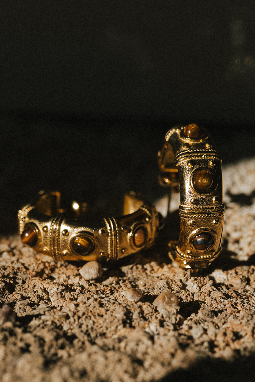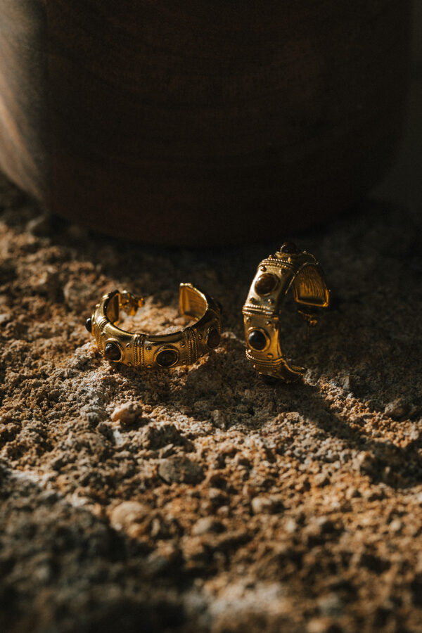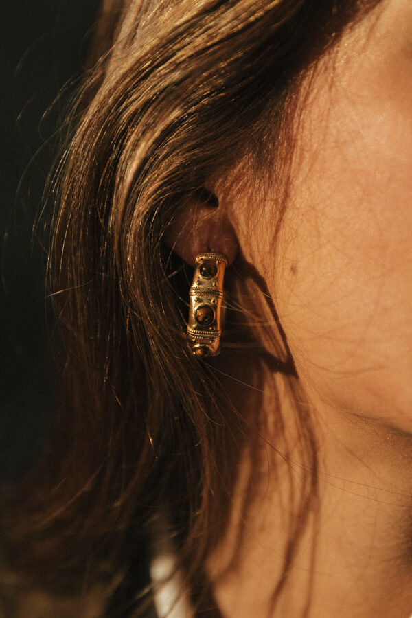Inicio / Joyería / Aros dorados con piedras oscuras