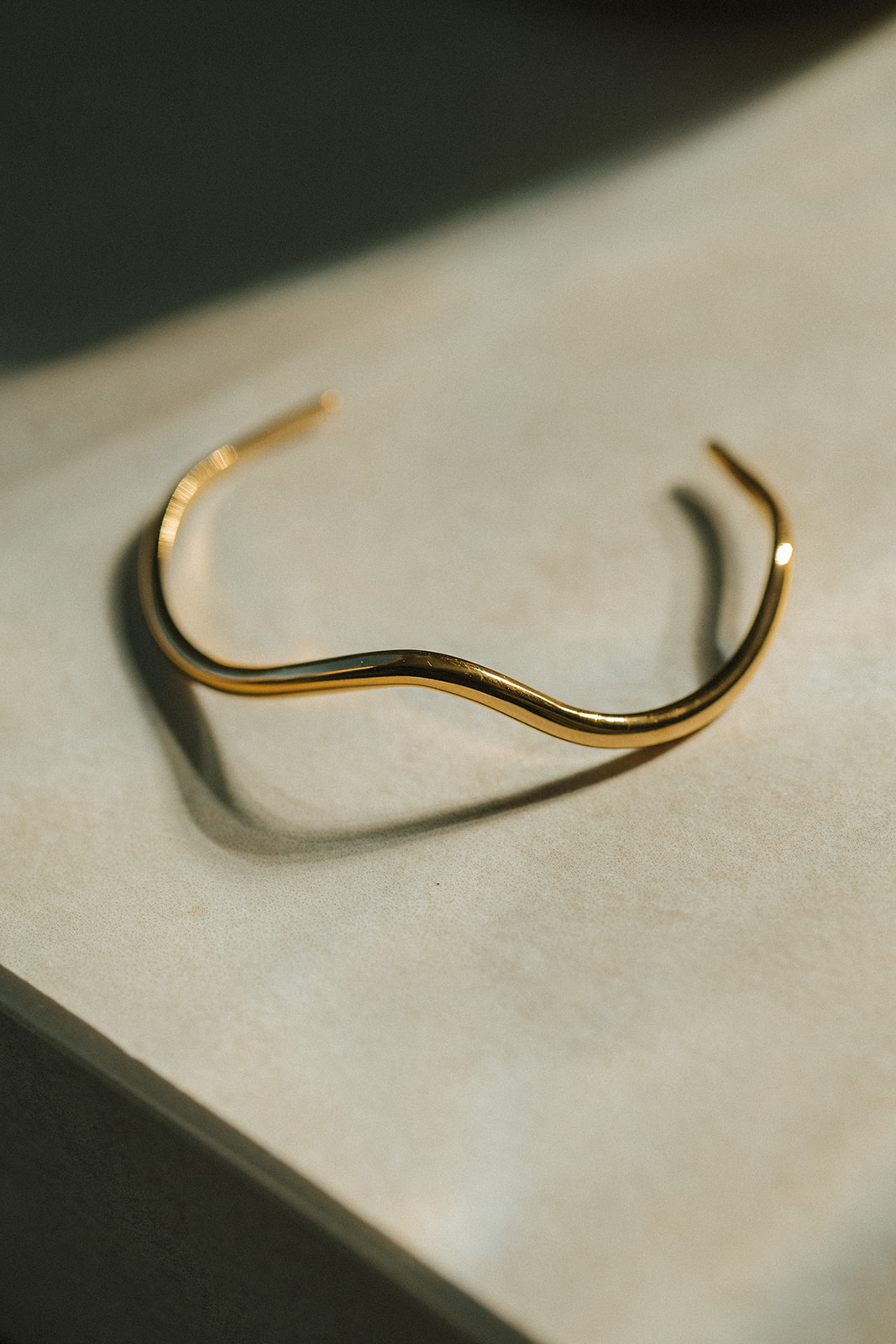 Pulsera dorada con forma de aro abierto y líneas limpias. El diseño es minimalista y cómodo de llevar. Ideal para combinar con otras piezas finas.